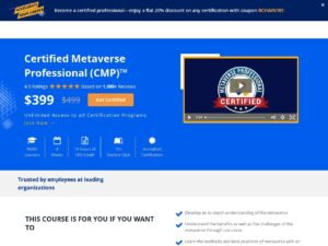 The metaverse is not a figment of imagination in science fiction movies and novels anymore. Now, you can develop your career in the metaverse with the new Certified Metaverse Professional (CMP) certification. The CMP certification focuses on enhancing the skills and knowledge of candidates who wish to work on metaverse platforms and assets. The Certified Metaverse Professional certification training course provides an in-depth overview of the technical foundations of the metaverse. Learners will come closer to the metaverse through insights on the use cases of the metaverse and its relationship with web3. Grow as a metaverse professional and develop a thorough understanding of everything you can do with the metaverse with the new metaverse professional certification.