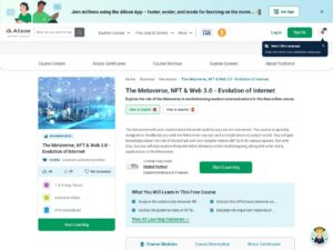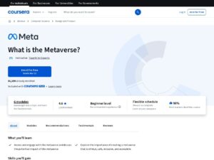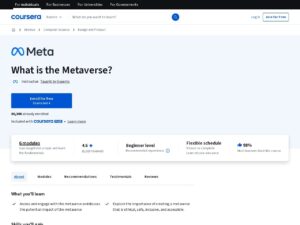 The metaverse isn’t just for gamers or developers, it will be for everyone. In this free course from the experts at Meta, you’ll learn what the metaverse is, what it means for our world today and into the future, and the opportunities it presents for both professionals and businesses. Understand the metaverse fundamentals – Experts will guide you through a broad range of topics spanning the metaverse ecosystem, from communication and collaboration to NFTs and cryptocurrency, from avatars and devices to platforms and game engines. You’ll learn about augmented reality (AR), virtual reality (VR), extended reality, NFTs, blockchain, web3, cryptocurrency, and more. Discover new ways to connect, learn, and work – The metaverse provides new ways to connect people, websites, platforms and realities. You’ll explore how it will enhance online social experiences, the future of work and learning. Opportunities for professionals and businesses – The metaverse will be built by everyone, with creative and practical applications being developed every day by imaginative people. Learn how the metaverse will be applied in areas like healthcare, education, city planning, art, and more—and how you can start creating these experiences today. You’ll also learn how the metaverse can make the world a more diverse, equitable, and inclusive place.